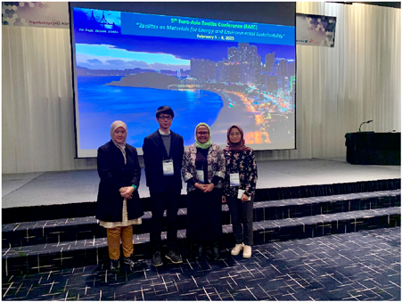 ほかにも,産総研の上村研究員の後処理によるハイアラーキカルなFAU型ゼオライトのAlゾーニング現象の解明に関する講演は大変興味深いものでした。また,タイ国のVidyasirimedhi Institute of Science and Technology(VISTEC)のChularat Wattanakit先生はハイアラーキカルなMFI型ゼオライトのスケールアップを紹介してくれました。筆者も似たような方法で合成を試みた経験があるため,講演後Wattanakit先生と合成の詳細や活性点の精密制御に関して相談し,将来の共同研究についても検討していただきました。そして,インドネシア大学のYuni K. Krinandi先生とIdra Herlina先生(図3)のバイオマス転換の講演も聴講しました。この2人の女性研究者は当研究室のKarimさんの修士課程の指導教員であるため,スムーズに紹介してくれました。Yuni先生とHerlina先生と交流し,バイオマス転換における細孔設計および卑金属の選び方について,多くのアドバイスをいただきました。