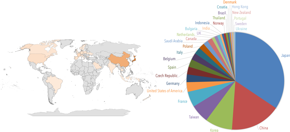 Post-symposiumは,post-ZMPC2024 School(第31回ゼオライト夏の学校)として,2024年7月25日から27日に京都山科にある京都山科 ホテル山楽で開催された。5名の講演およびバンケット中に学生による英語でのショート口頭発表18件があり,活発な議論がなされた。また,参加者は37名で日本,中国,台湾,ニュージーランド,ポーランド,サウジアラビアからなど多岐に及んだ(図4)。エクスカーションは,25日は万博記念公園太陽の塔内部見学,26日は上賀茂神社,金閣寺を訪れた。